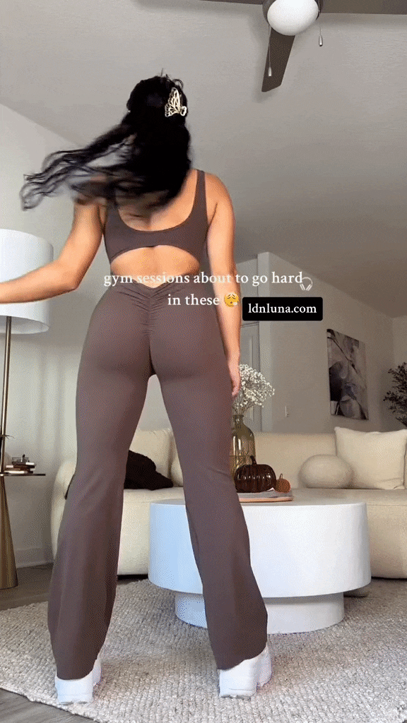 Add a sexy yet elegant touch to your workout wardrobe with this flare jumpsuit! This unique design offers a flattering V back scrunch that is sure to make a statement. Its functional design makes it perfect for working out and going out. All of our rompers/jumpsuits are well-padded, made out of high quality blends of nylon, and are guaranteed to shape your figure while providing high comfort & sweat resistance.